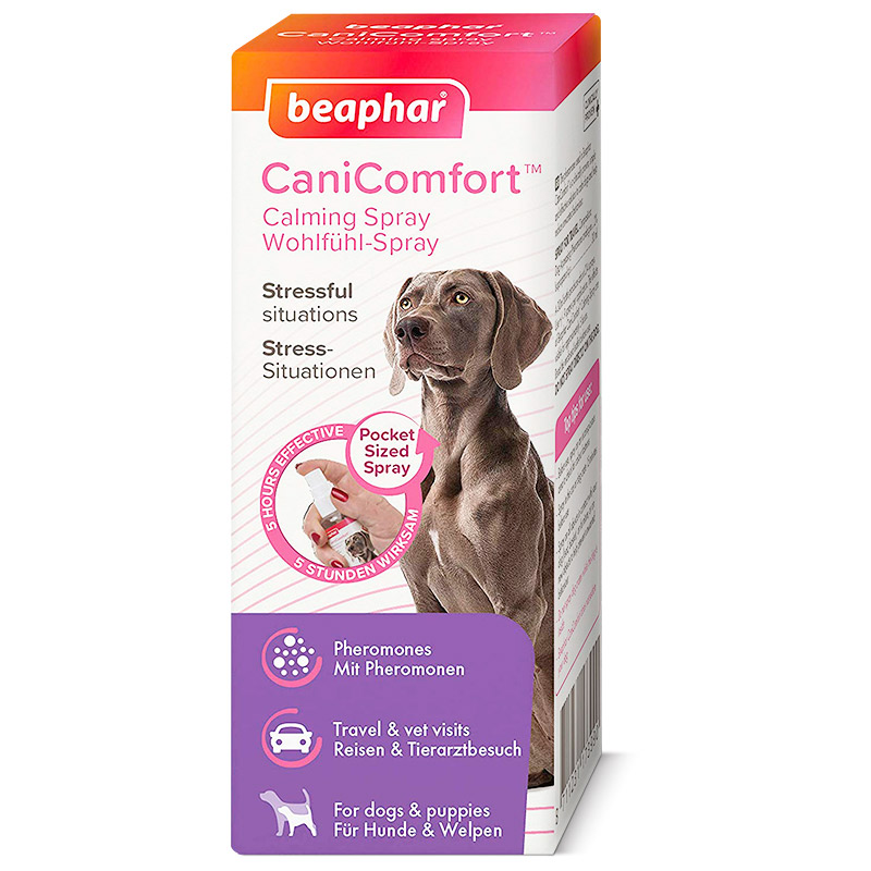 El spray calmante Beaphar CaniComfort® utiliza feromonas que están clínicamente probadas para promover la sensación de tranquilidad en los perros. Este práctico spray es perfecto para usar en el hogar, en jaulas para perros y en el automóvil para ayudar a mantener a los perros libres de estrés cuando viajan. Apto para perros de todas las edades.